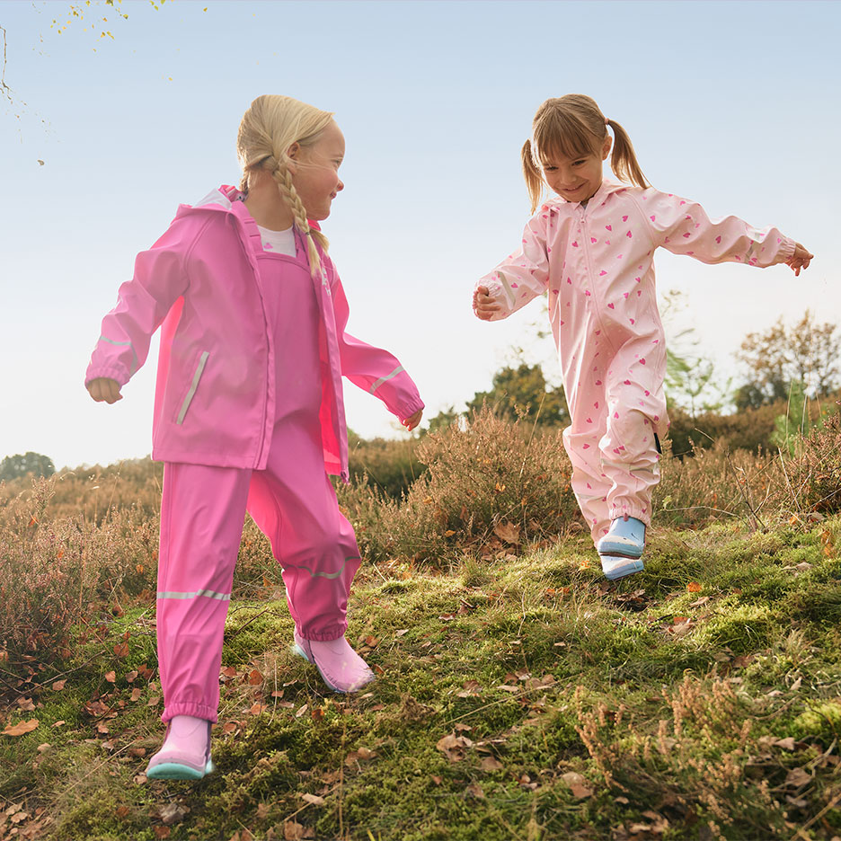 Børn elsker at lege udenfor og udleve deres fantasi i naturen. De vil gerne gå på opdagelse, selv når det er vådt, der er mindre lys, og jorden er mudret. Med det rigtige udstyr kan de små eventyrere mudre, grave og tumle rundt, uden at vådt tøj ødelægger deres sjov.