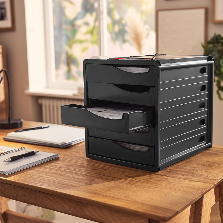 Ryd op på hjemmekontoret: Kom i gang! Er dit skrivebord ved at forsvinde under bunker af papir, og tager det en evighed at finde vigtige dokumenter? Lad os ændre på det. Et ryddeligt kontor gør dig mere produktiv og sparer dig for en masse tid. Det vigtigste tip til oprydning? Alt har sin plads - og lægges tilbage på sin plads straks efter brug: Skab et organisationssystem med mapper, rullecontainere og skrivebordsarrangører, hvor alt fra kuglepenne til vigtige fakturaer kan opbevares inden for rækkevidde. Følgende gælder også:Start hver arbejdsdag med et ryddeligt kontor. Ryd op på skrivebordet ved dagens slutning, arkiver dokumenter, sæt mapper tilbage i arkivskabet osv. Hvis dit hjemmekontor byder dig velkommen i "fabrikstilstand", er du straks i arbejdstilstand. Ideer, projektskitser, deadlines osv. hører ikke hjemme på skriblerier, der flyder rundt, men på et whiteboard, en magnettavle eller en vægkalender. På den måde har du altid overblik over deadlines, mens dit hoved er frit til de næste skridt. Fra opbevaringsbokse til arkivmapper - alle organisatorer har en etiket. Det betyder, at du ikke behøver at huske, hvor du har lagt tingene, og at du kan finde det hele på et øjeblik. Termiske labelprintere er praktiske, klar til brug med det samme og kræver ikke ekstra blæk. Ekstra tip: Som et digitalt skrivebord skal din bærbare computer også være organiseret. Kun programmer og dokumenter, som du har brug for lige nu, bør ligge på skrivebordet. Alt andet skal være velorganiseret og indekseret i hukommelsen. Du bør også regelmæssigt rydde op i din indbakke og sky.